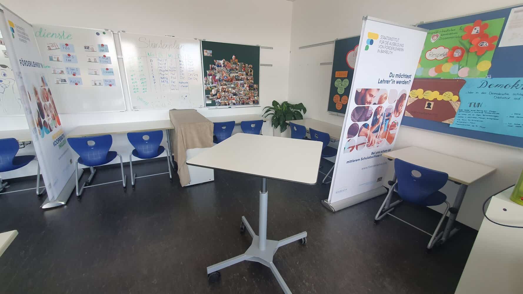 Im Modul Individualisierende Unterrichtsformen hat das AJ1 des Staatsinstituts für die Ausbildung von Förderlehrkräften vier Wochen lang das geöffnete Unterrichtskonzept nach dem Churermodell erprobt. Dabei durften die Studierenden ihr Kurszimmer eigenständig umgestalten – ganz im Sinne des Leitsatzes „Der Raum als dritter Pädagoge“.