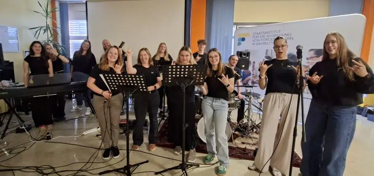 Im Rahmen der Kreativwoche sorgte unsere Institutsband, die „Burnouts“, bereits zum zweiten Mal für ordentlich Stimmung in der Aula der FOS/BOS Bayreuth. Mit einem mitreißenden Pausenkonzert begeisterten unsere Musiker nicht nur mit ihren Songs, sondern auch mit ihrer Nähe zu den Schülerinnen und Schülern. Zwischen den musikalischen Auftritten nutzten die Bandmitglieder die Gelegenheit, um die